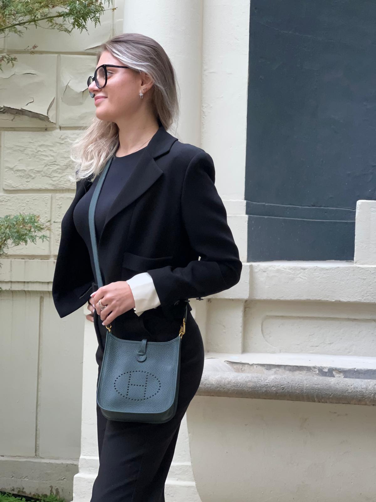 Minimaliste, discret, léger et sport a l'allure cavalier, l'Evelyne est reconnaissable grâce à son empreinte H perforée en ovale qui rappelle la forme d'un sabot. Sa bandoulière confortable est amovible et permet un porté croisé.