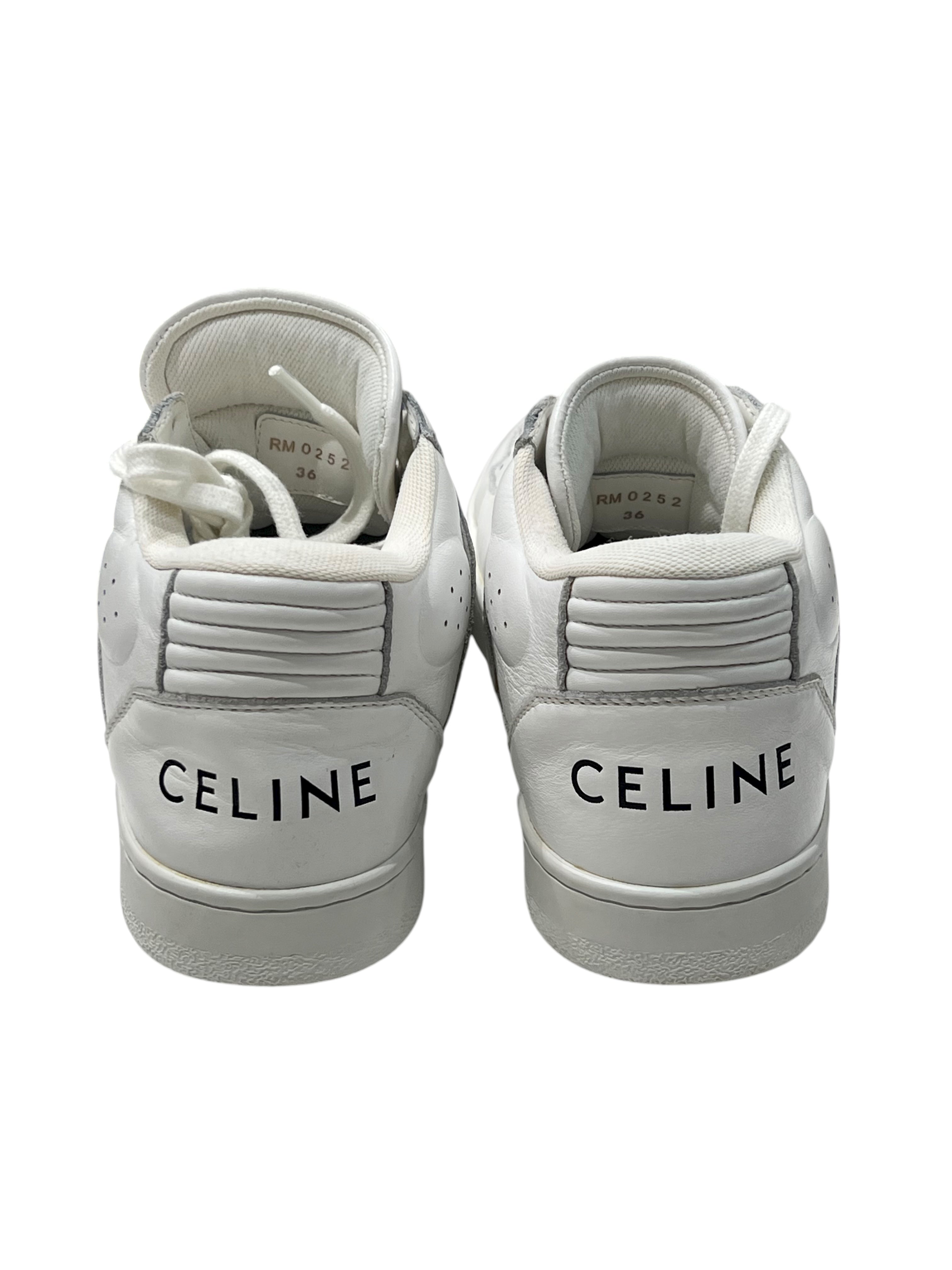 Sneakers en cuir blanc logo noir T36 en très bon état vendues full set.
