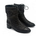 Bottines en cuir noires taille 37, avec liens pour resserrer, effet matelassé à l’avant.