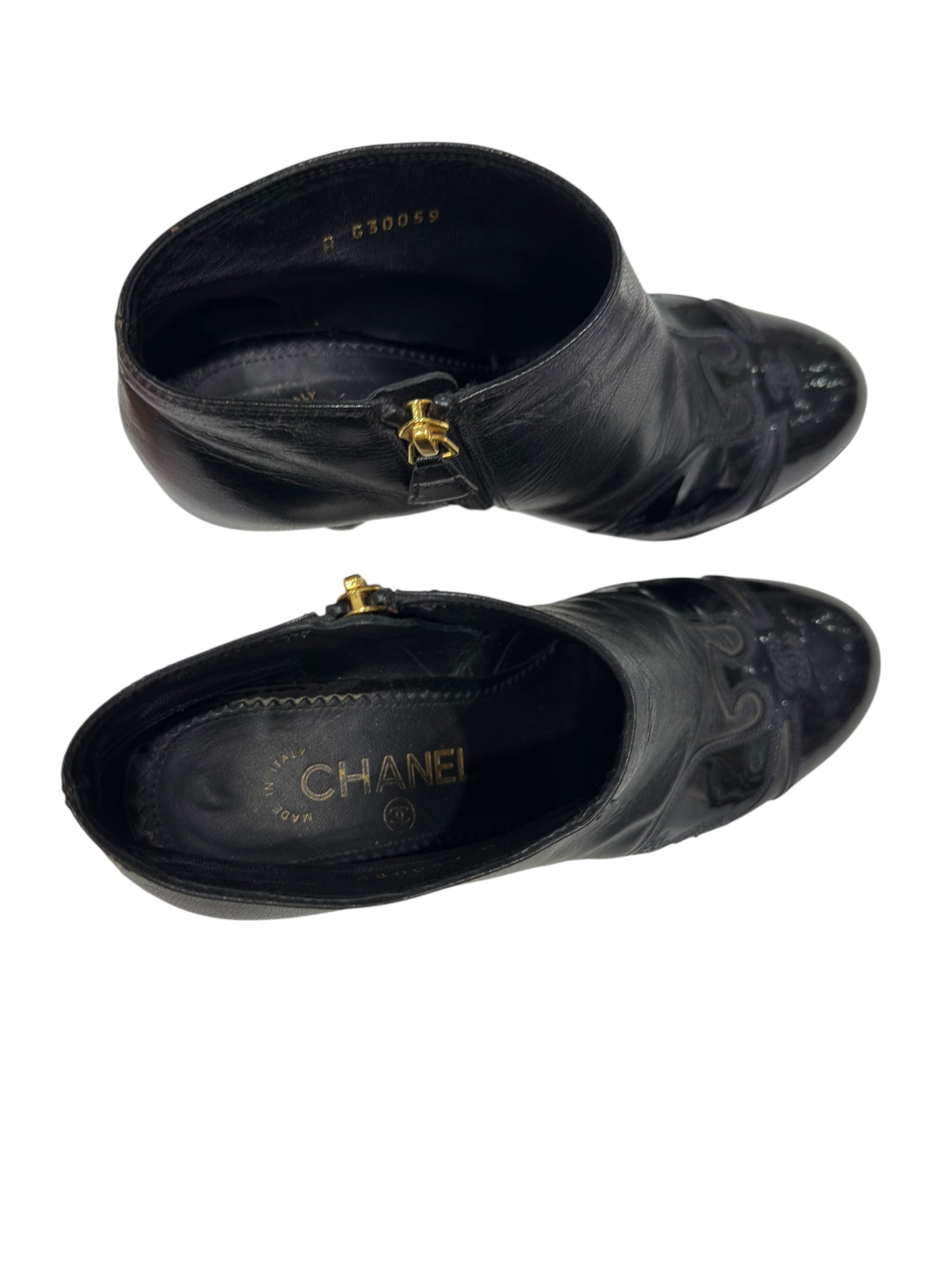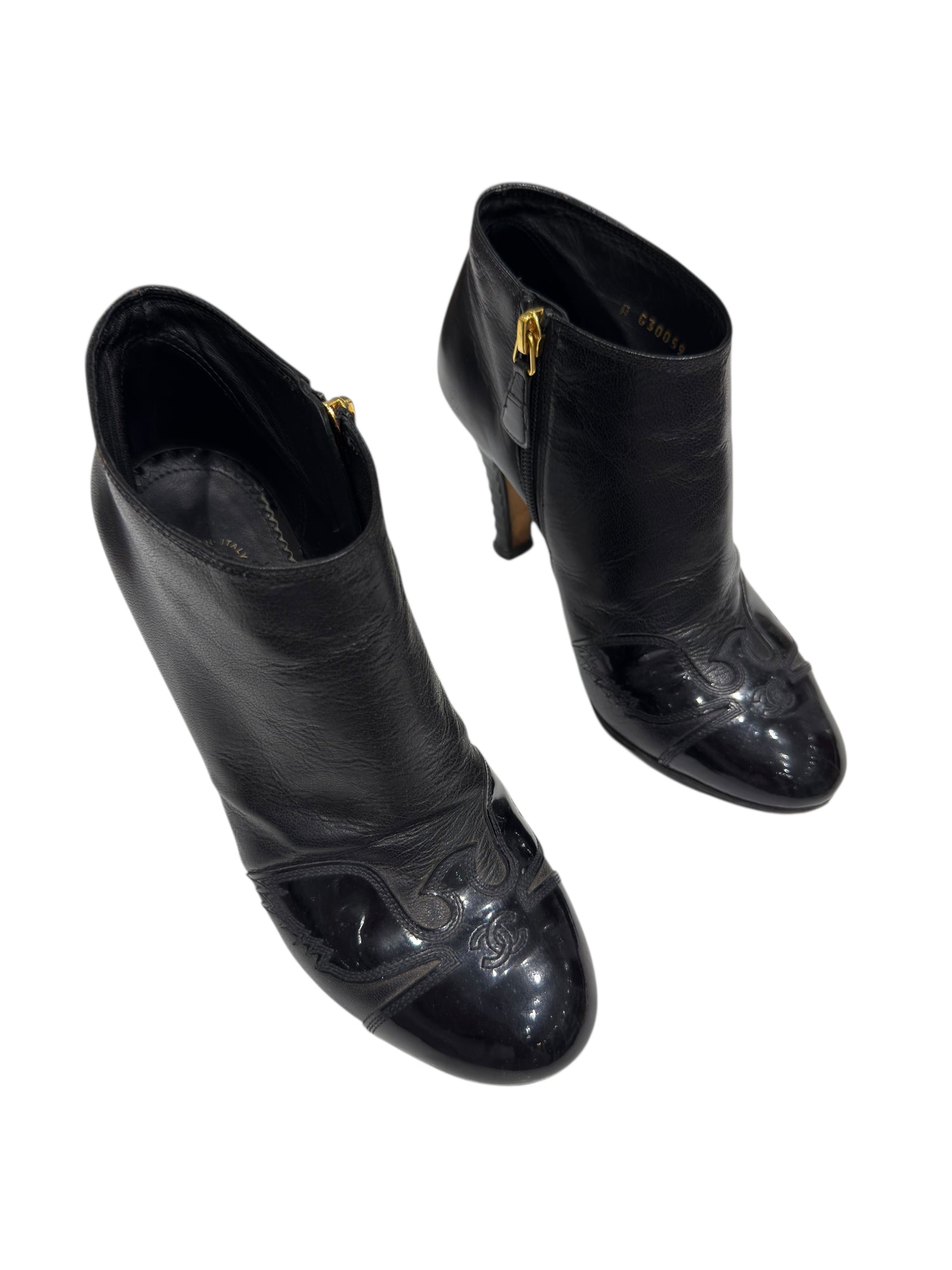 Chanel - Bottines en cuir lisse et bout vernis T36,5