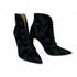 Elegante schwarze Samt-Stiefeletten mit silbernen Blumenstickereien.