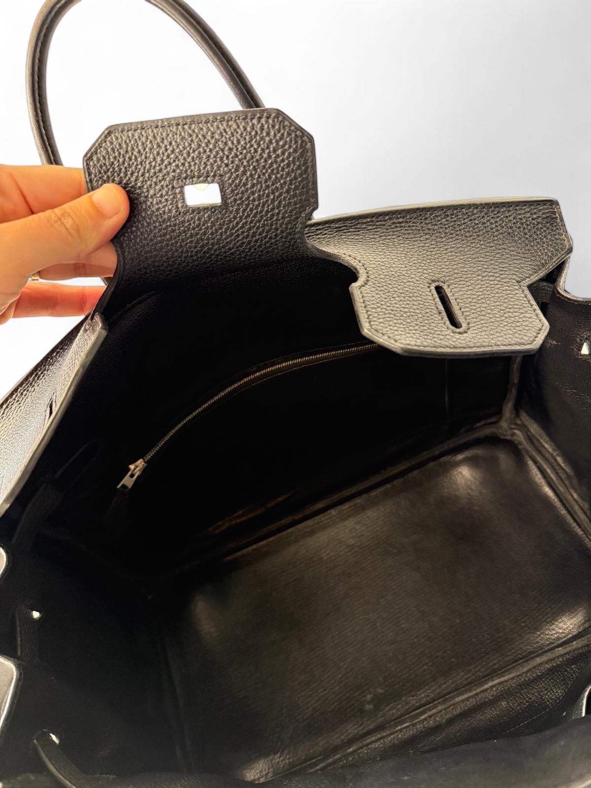 Avec un super rapport qualité prix nous vous proposons ce Birkin 35 Noir en cuir Togo. Les accastillages sont en parfait état, le sac a été porté mais avec soin; un petit accroc ton sur ton sur le dos visible en photo dans la partie basse du sac. Il est fourni avec boîte/housse/dust/protection de pluie.
