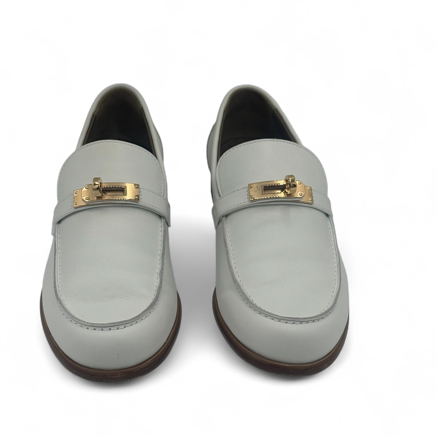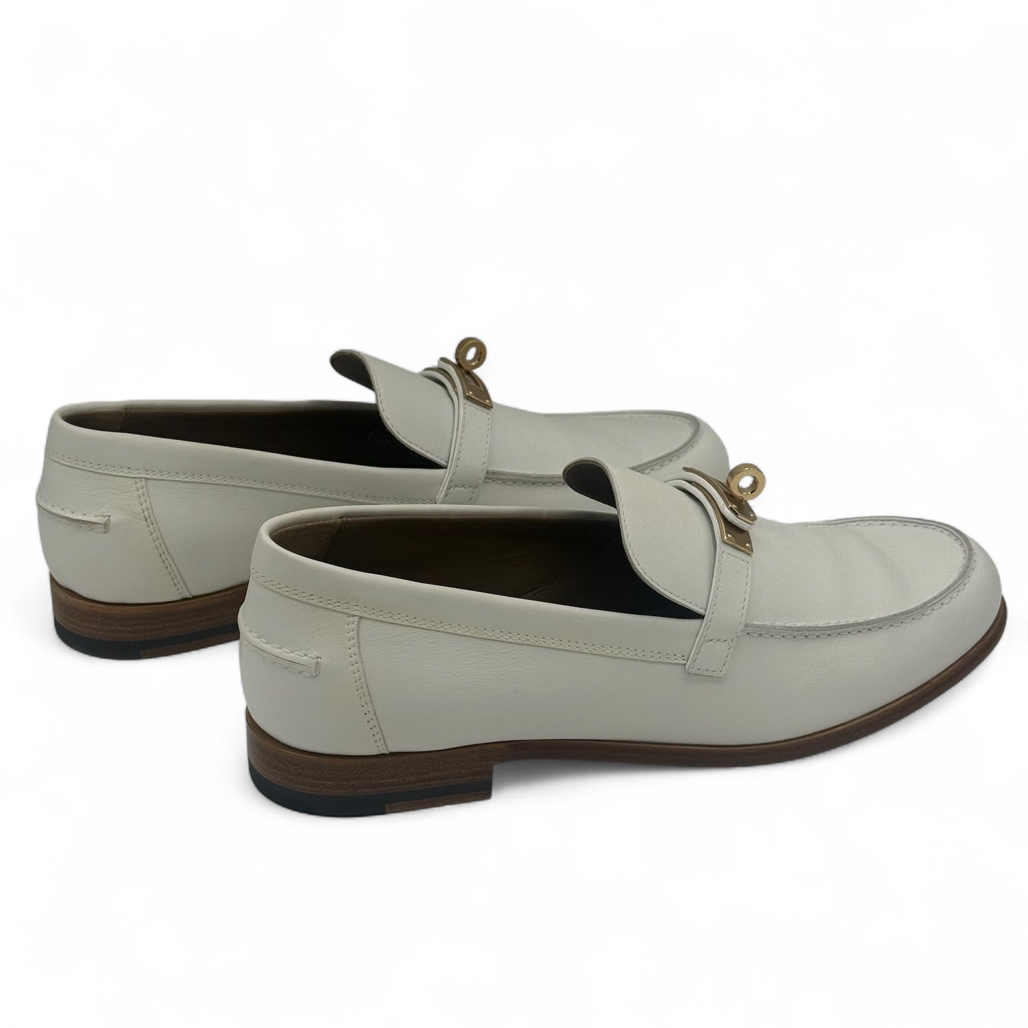 Paire de mocassins en cuir blanc modèle destin avec la boucle Kelly gold (avec plastiques)