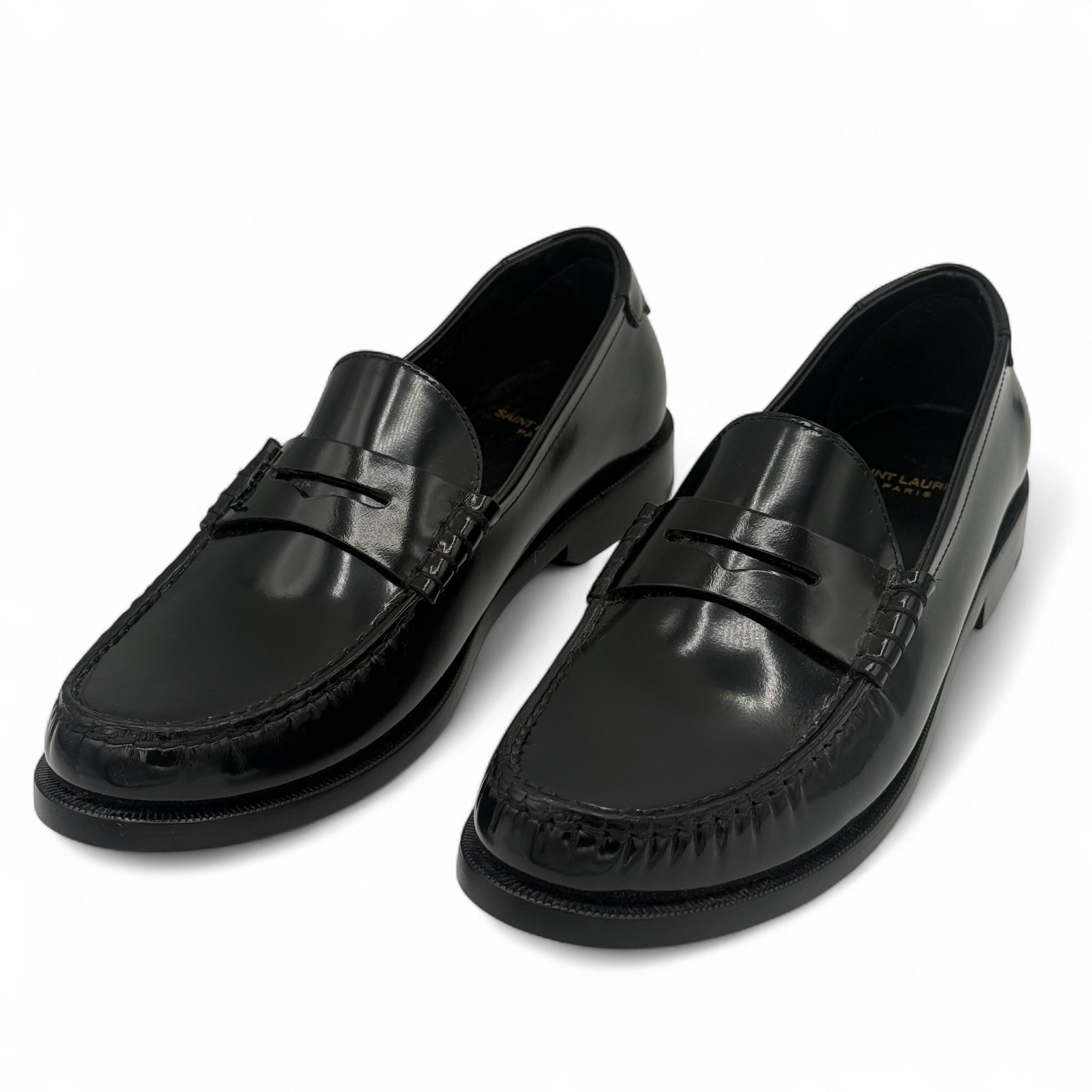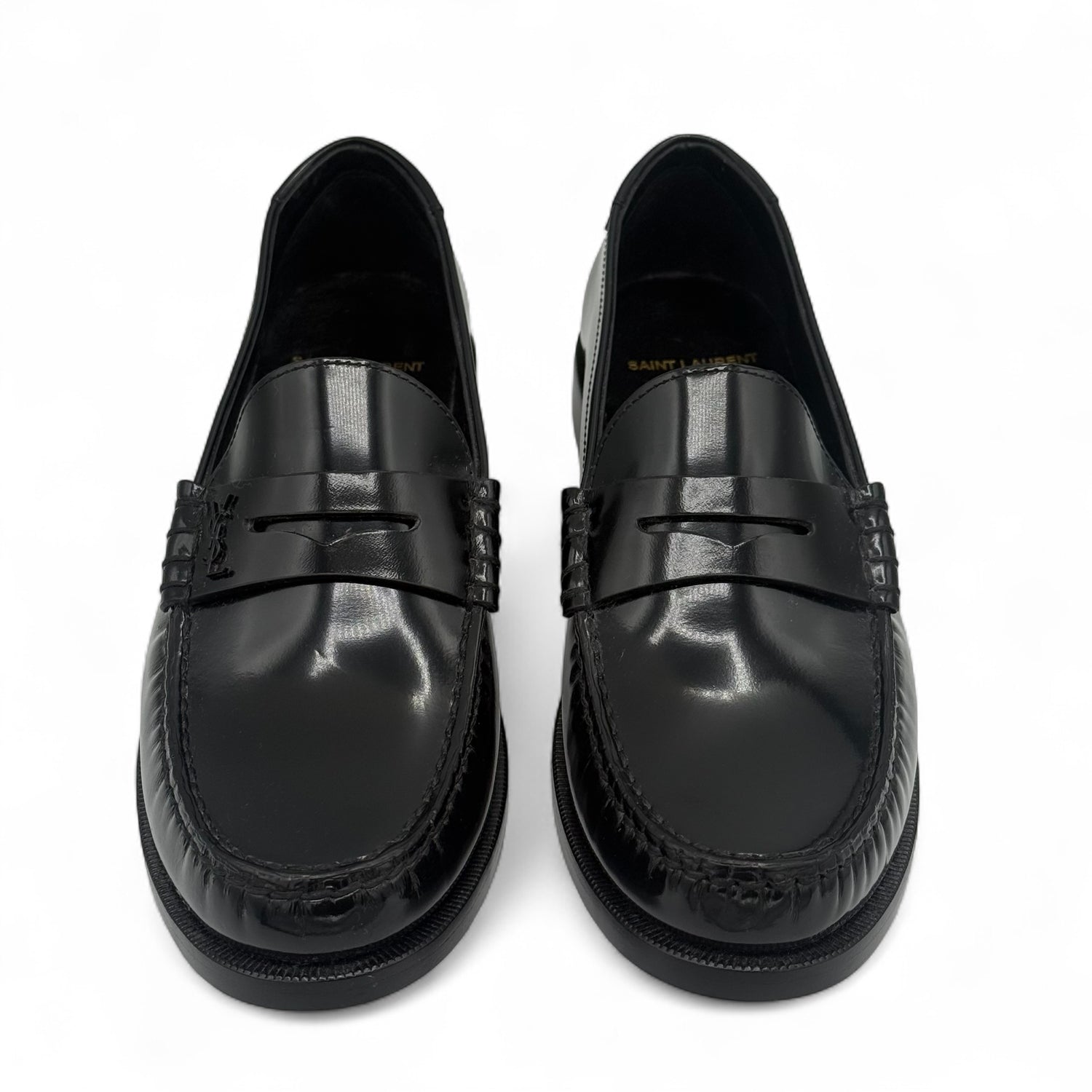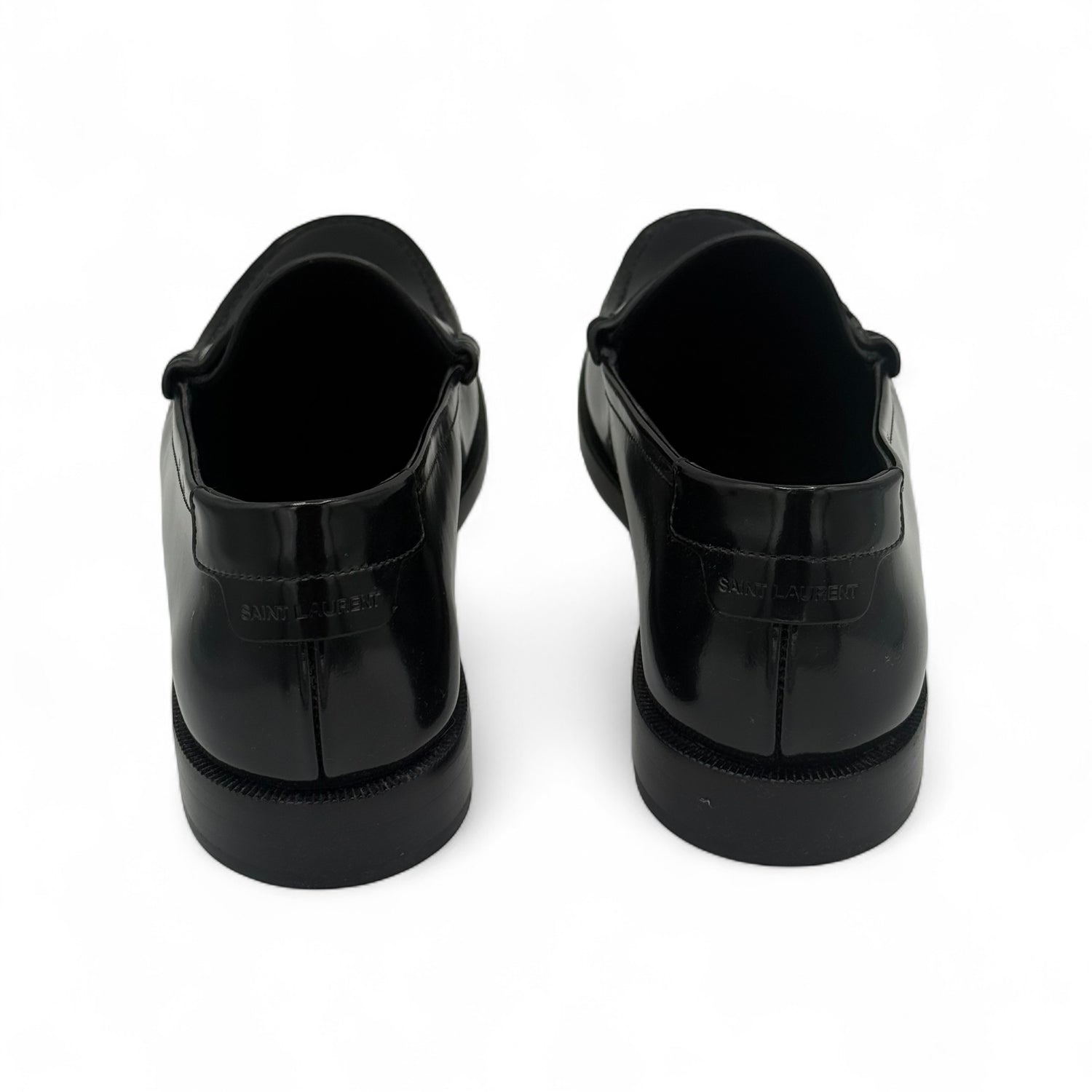 Sublime paire de mocassins en cuir noir avec le petit logo YSL discret, sobre et élégant. La paire de souliers parfaite pour l’automne hiver qui approche.