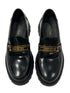 Sublimes mocassins en cuir de veau noirs ornés d’une barre métallique dorée à l’insigne de la marque
